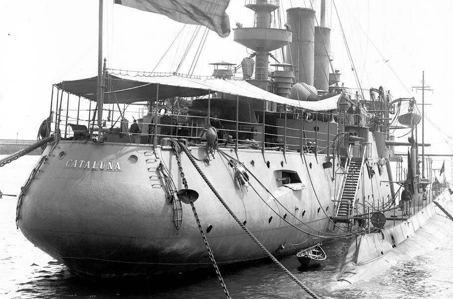 En esta imagen, tomada por el fotógrafo de Las Palmas Eleuterio López en marzo de 1917, destaca a primera vista un buque de guerra de los de antes. Se trata del crucero Cataluña, un acorazado construido en el arsenal de Cartagena que fue botado en 1900 y prestó servicio en…