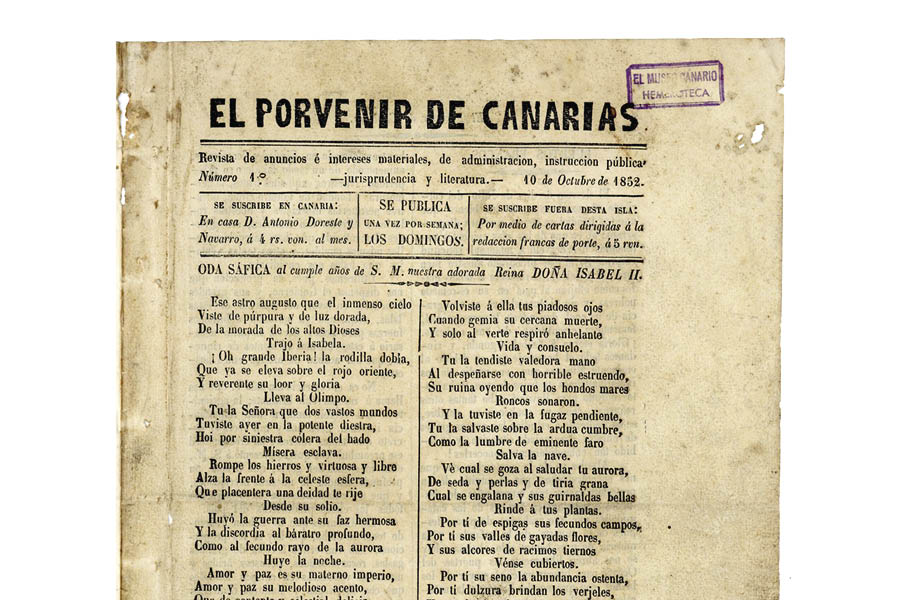 Con el título de El porvenir de Canarias: revista de anuncios e intereses materiales, de administración, instrucción pública, jurisprudencia y literatura, se publicó el 10 de octubre de 1852 el primer número del primer periódico privado en Las Palmas de Gran Canaria.